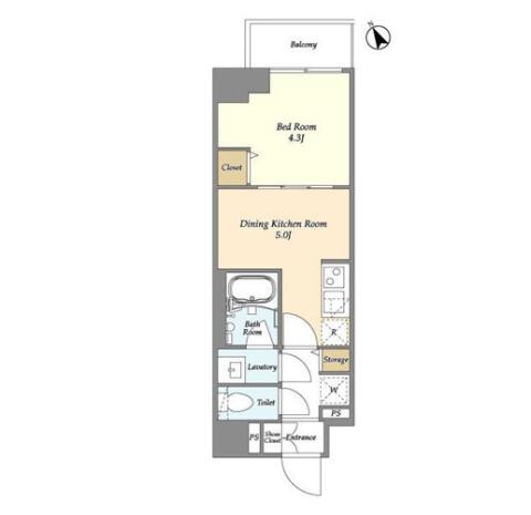 | 間取り | 1DK DK5帖 , 洋室4.3帖 | ||
