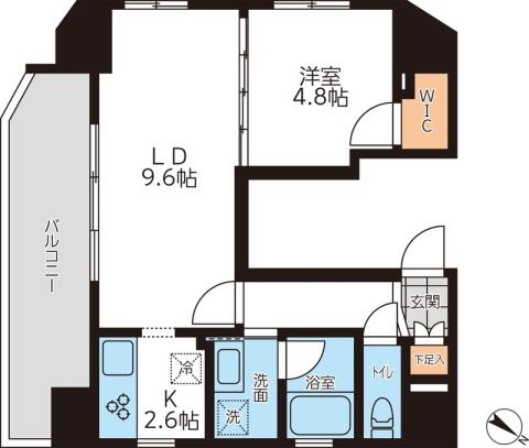| 間取り | 1LDK LD9.6帖 , K2.6帖 , 洋室4.8帖 | ||