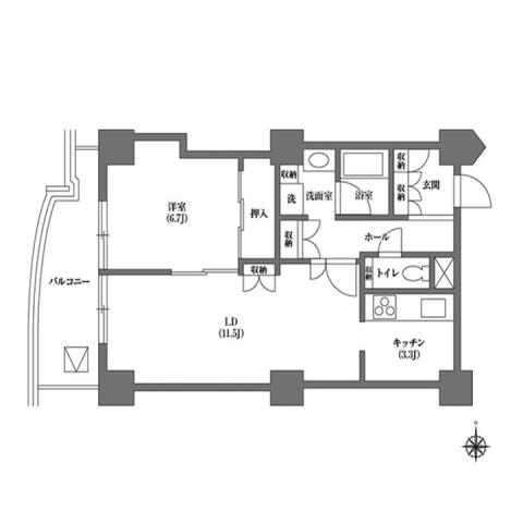 | 間取り | 1LDK LD11.5帖 , K3.3帖 , 洋室6.7帖 | ||