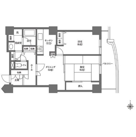 | 間取り | 2DK DK8.7帖 , 和室6.0帖 , 洋室6.0帖 | ||