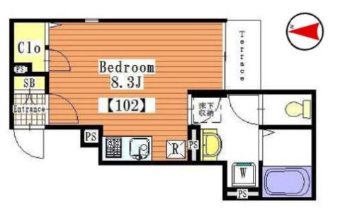 | 間取り | 1R 洋室8.3帖 | ||