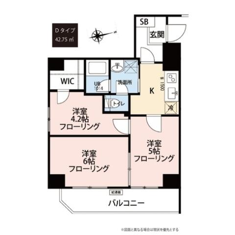 | 面積 | 42.75m² | バルコニー | 東 |