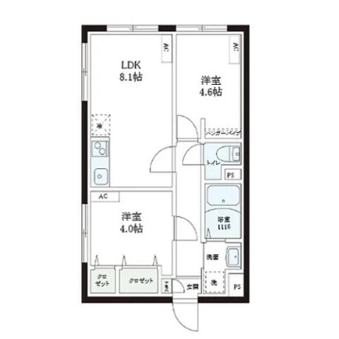| 間取り | 2LDK LDK8.1帖 , 洋室4.6帖・4.0帖 | ||
