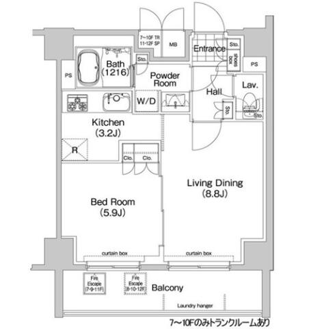 | 建物構造 | RC | 階建て/所在階 | 地上12階/7階部分 |