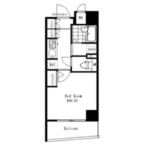 | 間取り | 1K K , 洋室6.1帖 | ||
