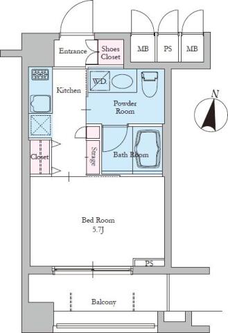 | 間取り | 1K K , 洋室5.7帖 | ||