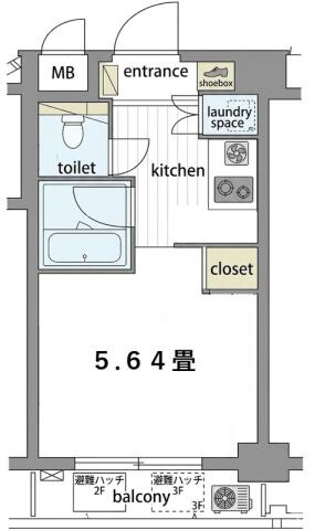 | 間取り | 1K K , 洋室5.64帖 | ||